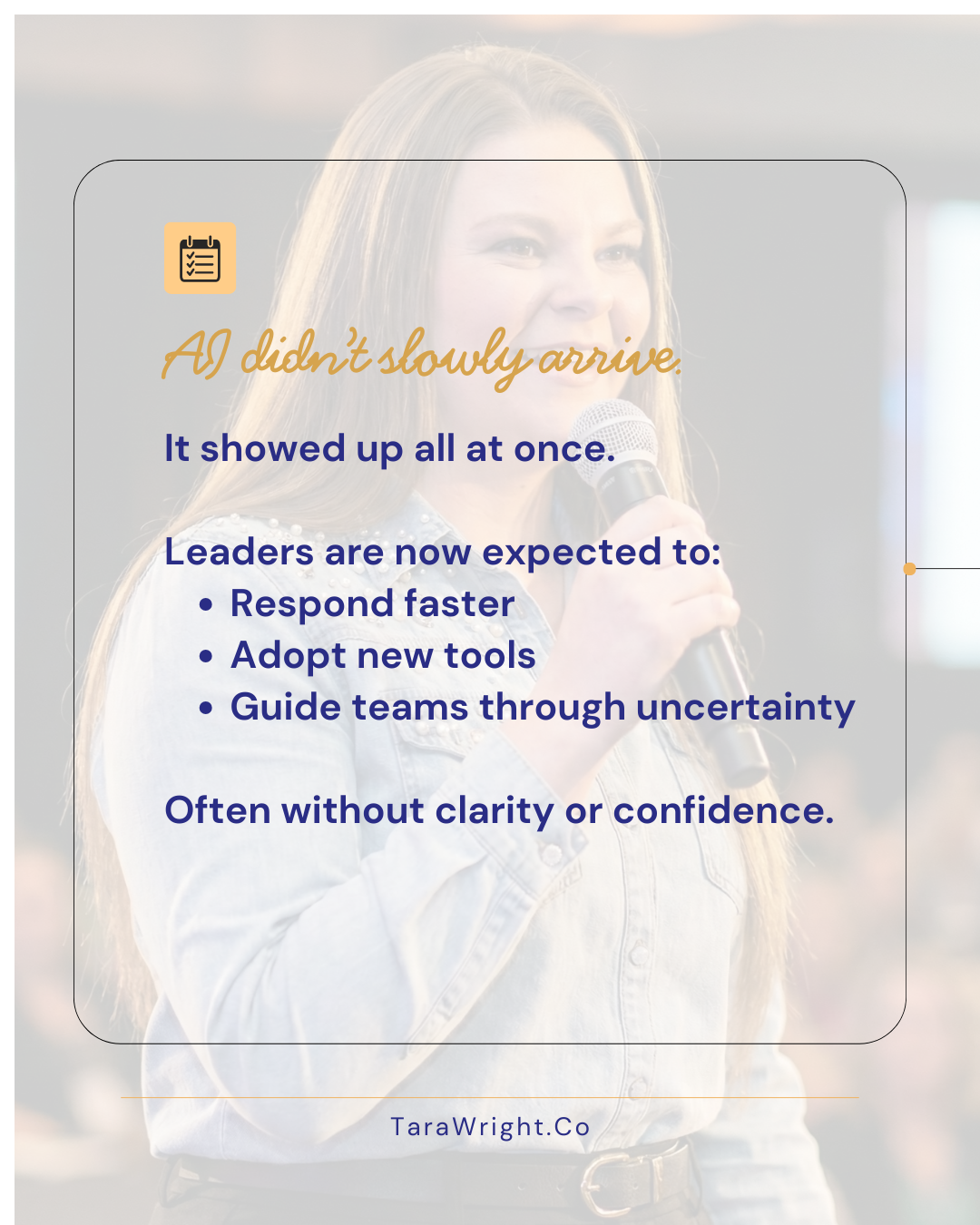 I speak to audiences navigating real change—AI, leadership shifts, burnout, and scale—without pretending the old rules still apply.